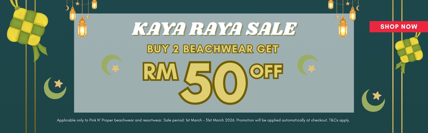 Buy 2 Get RM50 OFF on all beachwears! End in