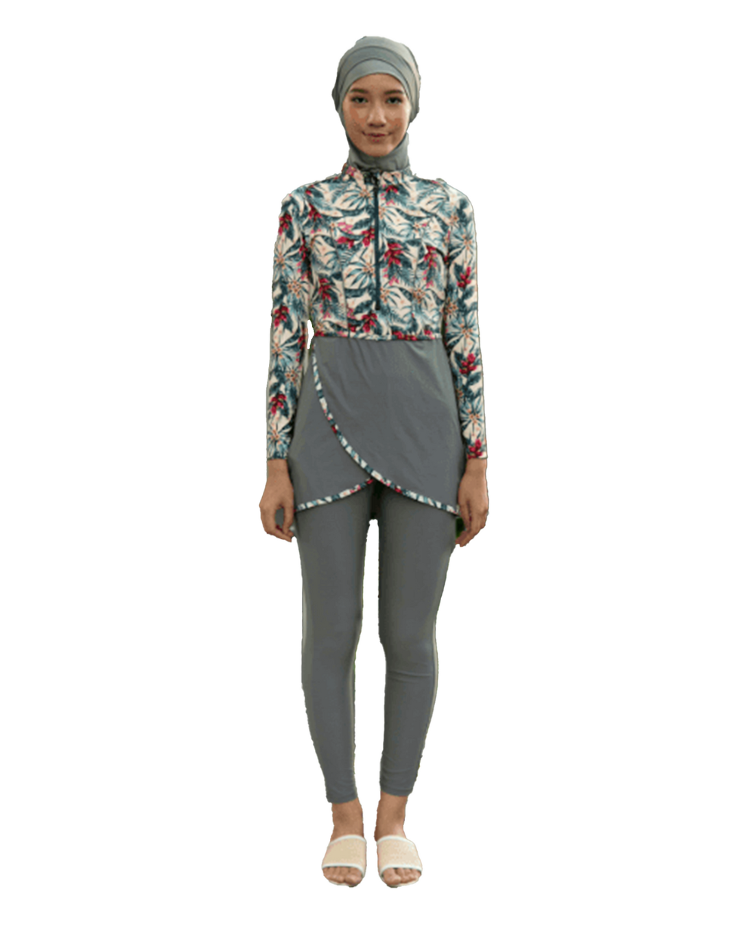 Modernly Modest Raya Tropical Muslimah Swimwear Set in Grey (Plus Size Available)
