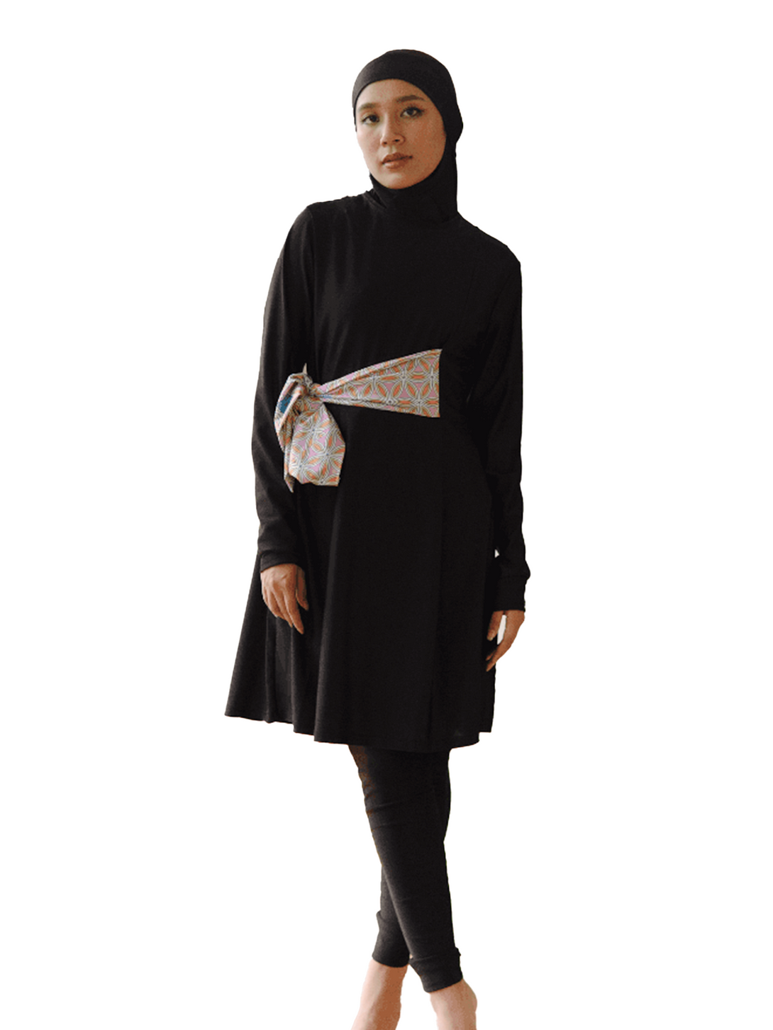Modernly Modest Suri Belted Muslimah Swimwear Set in Black